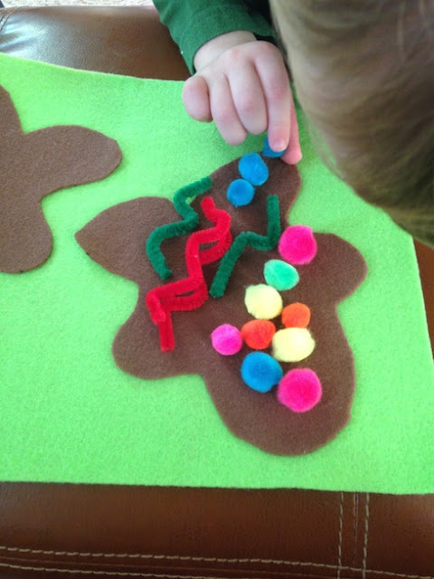 They first pulled all the pieces off then set about decorating their own "cookies". So much fun!