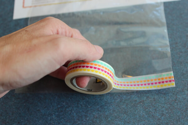 These are super easy to make. Start by wrapping your washi tape around the bottom of the bag. Then add a second coordinating stripe for an extra kick of color.