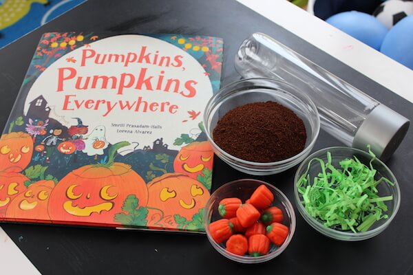 As part of our Pumpkins, Pumpkins Everywhere story time, I decided to make them their very own pumpkin patch in a bottle! It's super easy and so fun.