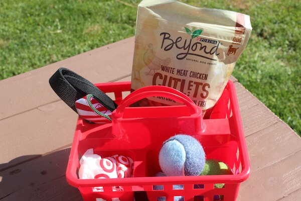 To help make sure I'm doing these 5 things every day, I put together a Healthy Essentials basket for my pups. I keep my Purina Beyond snacks in there, along with a few tennis balls for playing, a leash and waste bags for our walks (great way to reuse my Target shopping bags!), and an extra collar just in case. Now I have everything we need in one spot!