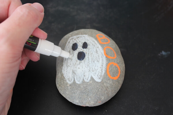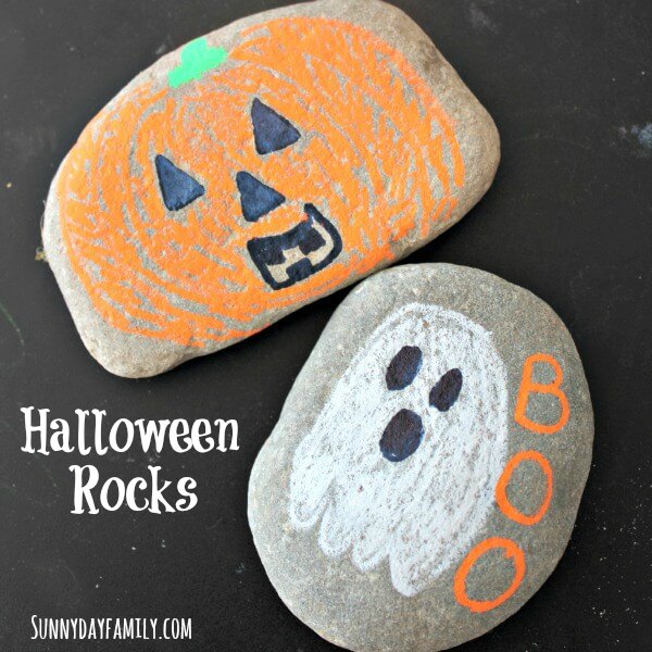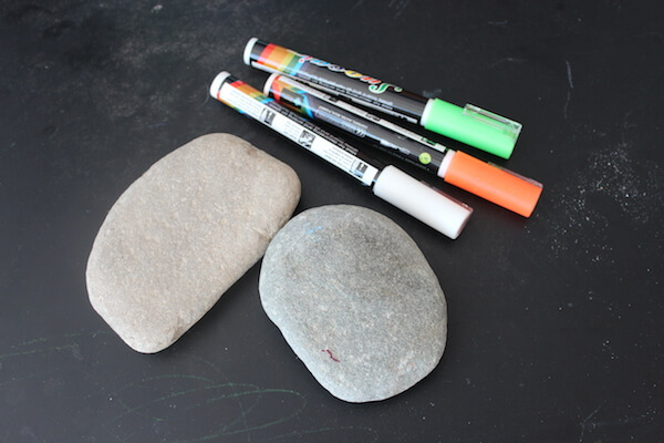 I am not an artist, so I love making my own Halloween decorations because even I can draw pumpkins and ghosts. This was a fun little craft for me to do while the boys were playing, and older kids could certainly do them as well. To make Halloween Rocks, you need: