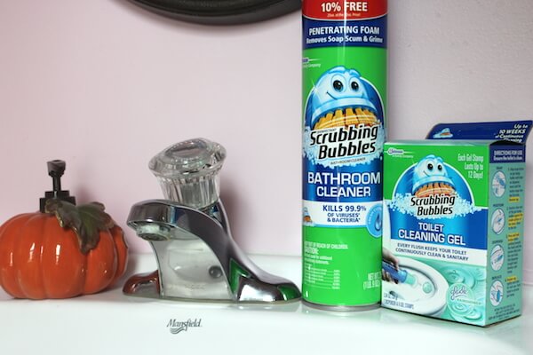 Most importantly, make sure your bathroom is clean! I love Disinfectant Scrubbing Bubbles® Bathroom Cleaner to clean and disinfect all my bathroom surfaces easily. My secret weapon is Scrubbing Bubbles® Toilet Cleaning Gel - just pop a gel stamp under the rim and flush. That's it! Your bowl will be cleaned and freshened with every flush, for up to 10 weeks! How easy is that?